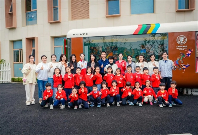 11月15日,“传承体育精神 放飞希望梦想”—沃尔沃汽车“移动的体育博物馆”校园行第六站来到了中国福利会托儿所普陀园区,这也是移动的体育博物馆首次进入幼儿园和面向学龄前儿童,让孩子们在园内感受到体育运动和体育文化的多姿多彩。